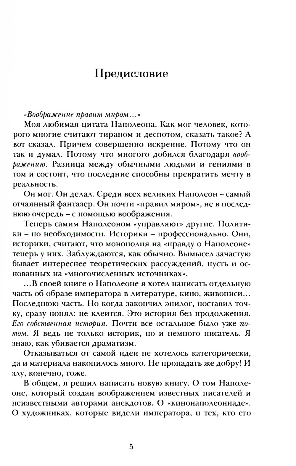 «Моя слава в том, что она будет жить вечно». Так сказал Наполеон и... Ошибся? Сегодня немало есть тех, кто не просто хочет лишить Наполеона славы, но и вообще - забыть о нем. Вряд ли получится. Наполеону посвятили согни фильмы, тысячи книг. Мало кто из исторических деятелей так вдохновляет художников, как французский император. Эта книга о Наполеоне, созданная воображением. Писателей, мастеров живописи, кинорежиссеров... Еще - о мифах и легендах. «Воображение правит миром...» Так сказал Наполеон. Я не ошибся...