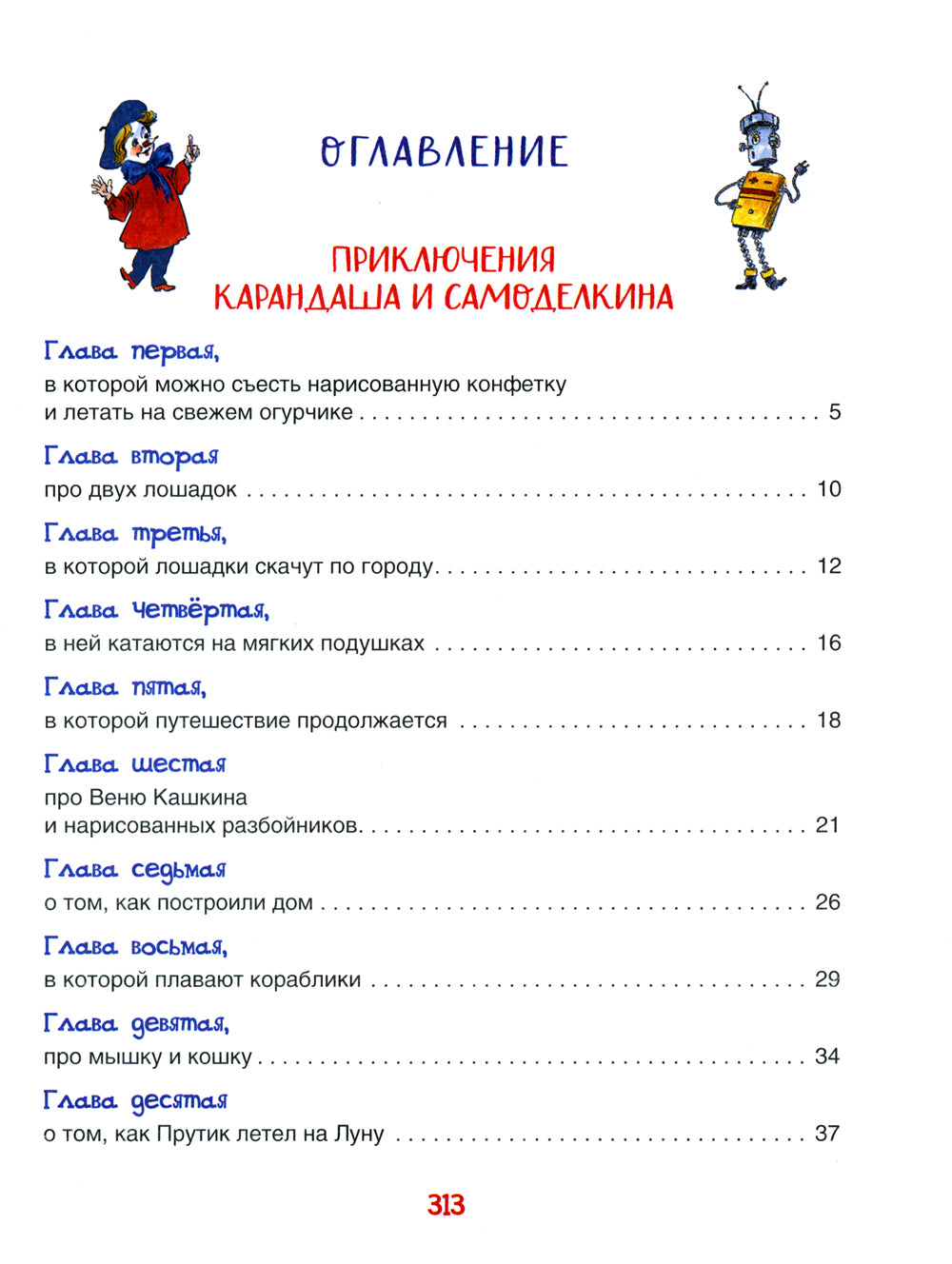 Книга посвящена приключениям веселых маленьких человечков: художника Карандаша и мастера Самоделкина. Рисунки Карандаша мгновенно оживают, а Самоделкин может мастерить любой, даже самый сложный, механизм. В книге участвуют две конвенции: «Приключения Каранда и Самоделкина» и «Волшебная школа Карандаша и Самоделкина». Иллюстрации народного художника РФ Анатолии Елисеевой.
