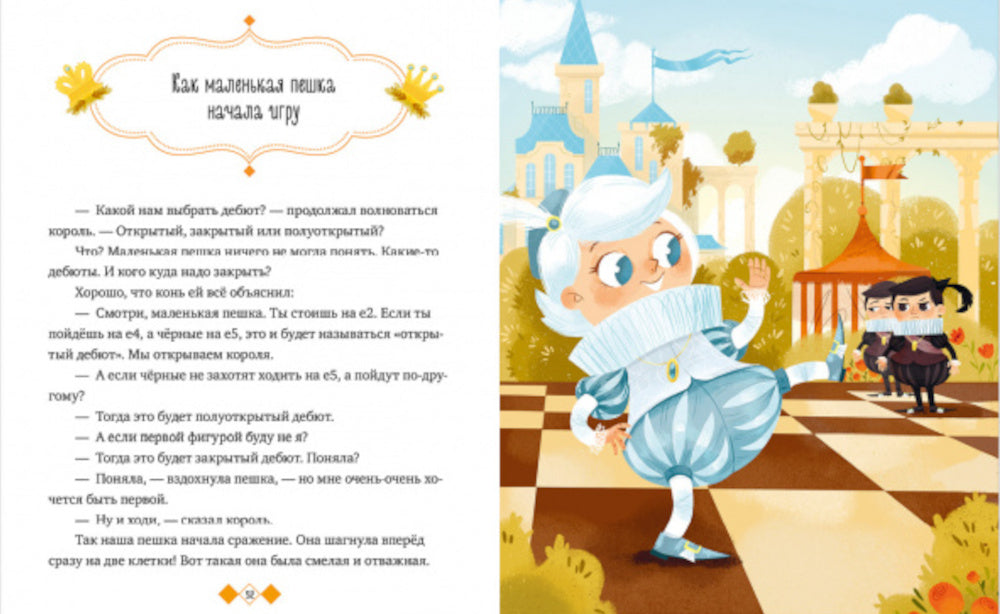 Отправляйтесь в увлекательное путешествие по шахматному королевству с очаровательной пешкой и приобретайте знания о шахматной игре в форме увлекательных сказок!