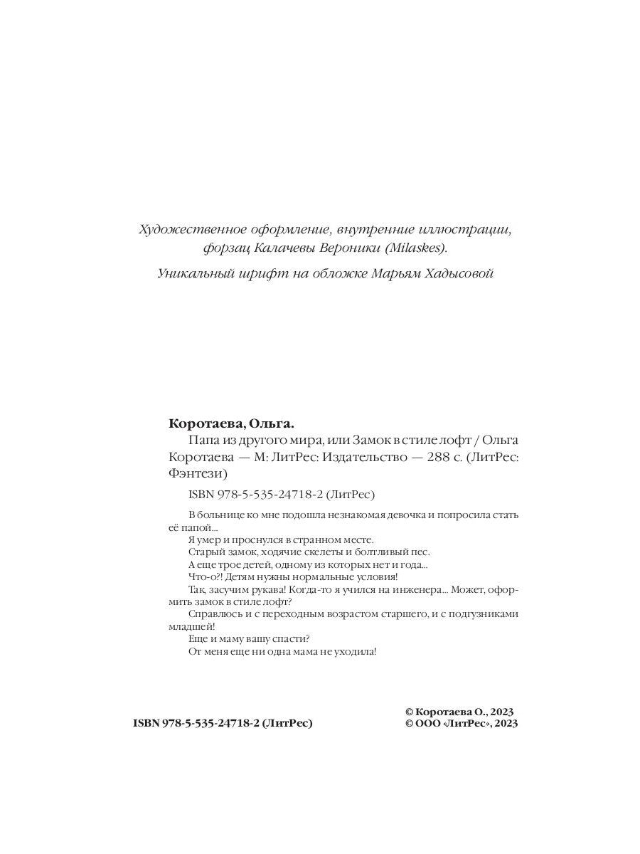 В больнице ко мне подошла незнакомая девочка и попросила стать ее папой… Я умер и проснулся в странном месте. Старый замок, ходячие скелеты и болтливый пес. А еще трое детей, один из которых нет и года… Что-о?! Детям нужны нормальные условия! Так, засухим рукава! Когда-то я учился на инженера… Может, оформить замок в стиле лофт? Справлюсь и с переходным возрастом старшего, и с подгузниками младшей! Еще и маму вашу спасли? От меня еще ни одна мама не училась!
