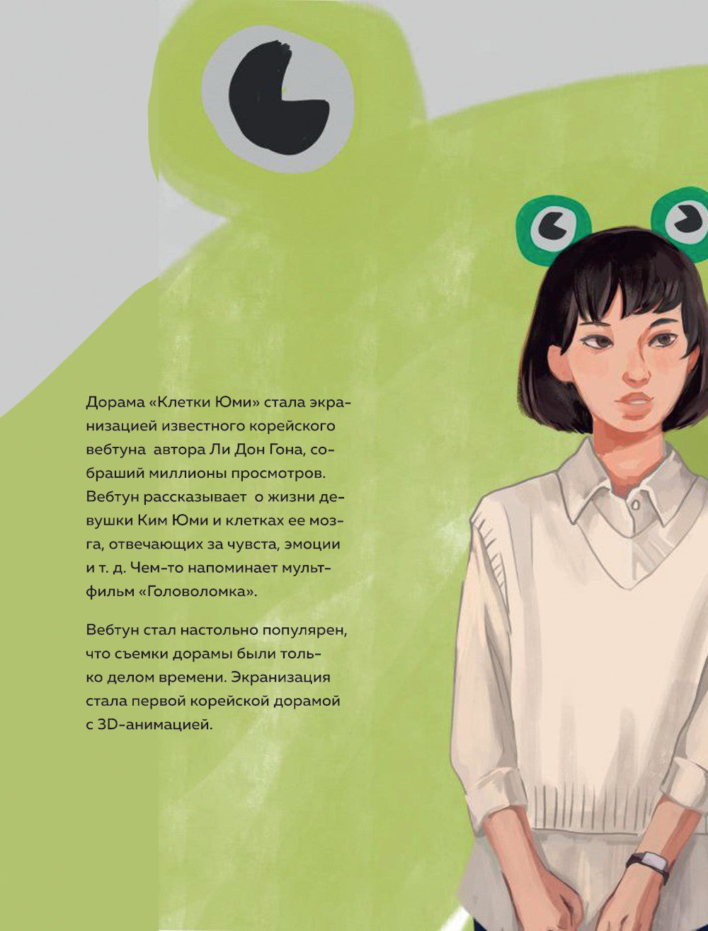 Корейские дорамы уже не первый год покоряют сердца всего мира, и их популярность с каждым днем ​​лишь растет. Мы познаем новую историю, сопереживаем любимых любимых, погружаемся в новую культуру… и делаем все это не выходя из дома! «Клетки Юми» — экранизация известного корейского вебтуна и первая корейская дорама с 3D-анимацией, собравшая миллионы просмотров. Практически каждый представитель корейских сериалов знает трогательную историю девушки Ким Юми, у которой после тяжелого расставания просто отключилась клетка головного мозга, отвечающая за любовь. И теперь задача остальных клеток — разбудить «любовную» и дать девушке еще один шанс на это прекрасное чувство. Теперь у всех поклонников дорамы «Клетки Юми» есть уникальная возможность развиваться в любимом мире еще глубже! Внутри этого фанбука вы найдете краткий пересказ основных сюжетных поворотов, истории со съемками и фактов об актерах, а также увлекательные задания, благодаря которым вам удалось построить небольшую городскую клетку. (Ведь при просмотре дорамы вы точно показали, как бы он выглядел, правда?) Оживите в памяти все, что знали о любимой дораме — и измените ее, если хотите! Ограничений нет!