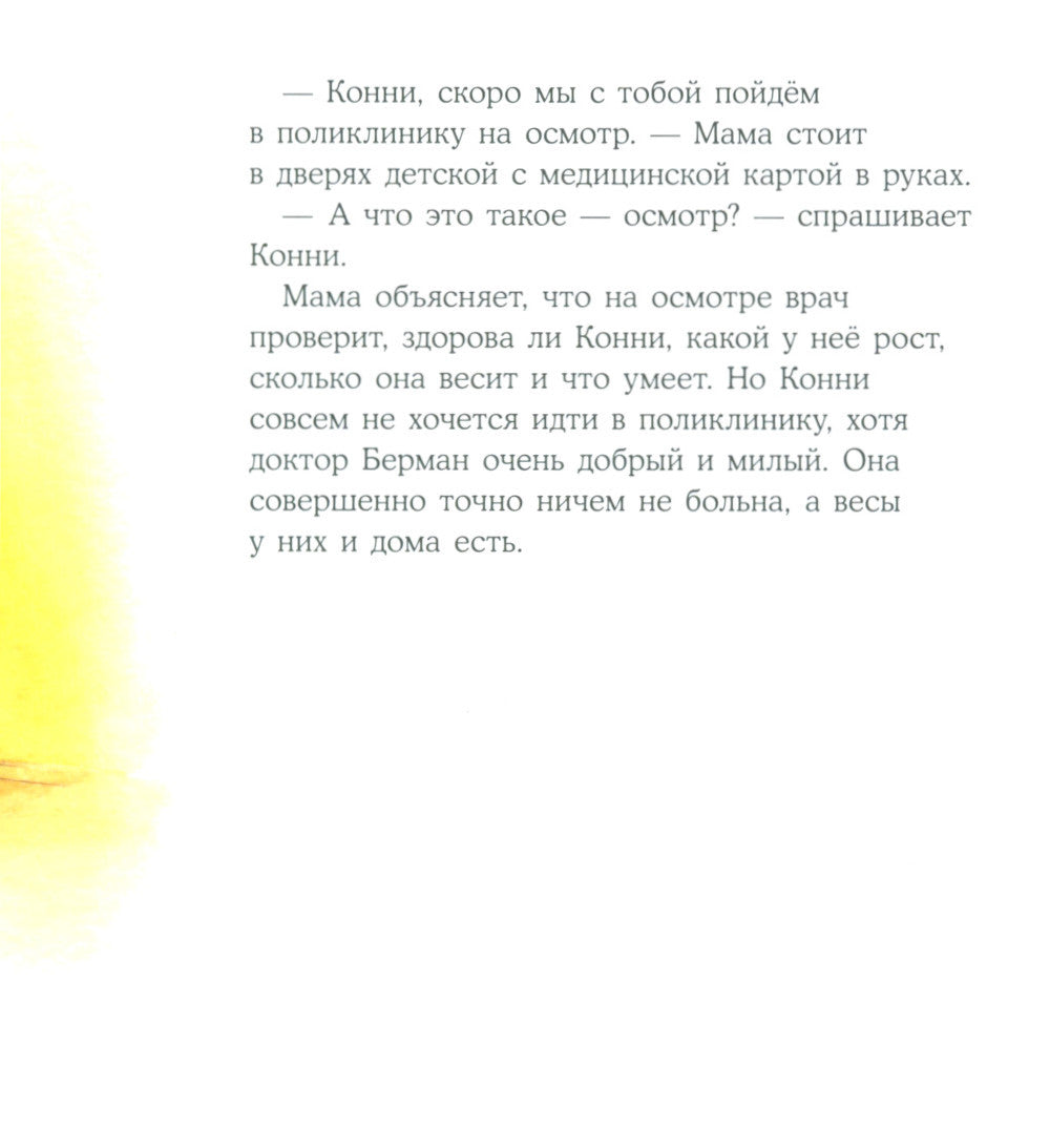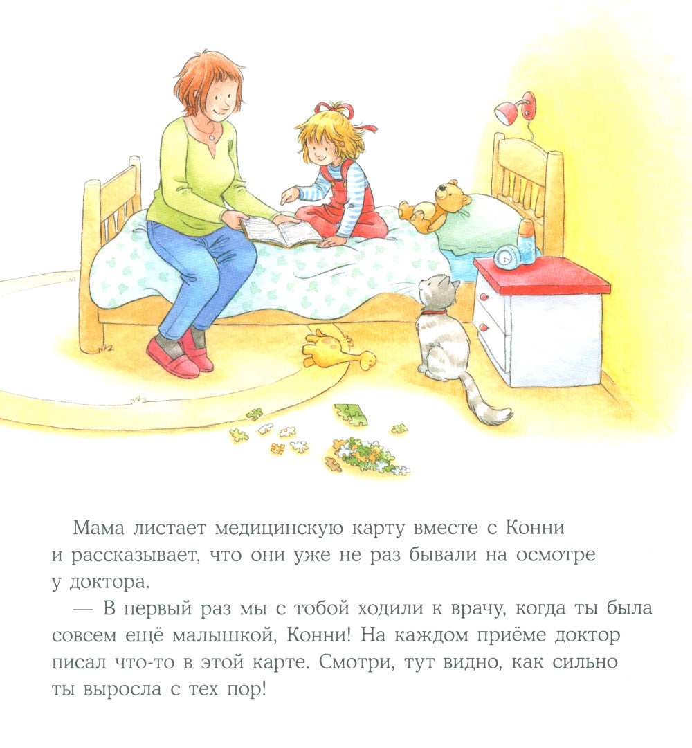 Ежегодно каждый ребенок должен проводить профилактический осмотр в поликлинике. И каждый раз этот визит рискует превратиться в пытку не только для малыша, но и для родителя. Вместе с Конни подготовьте ребенка к предстоящему мероприятию: прочитайте, как проходит осмотр у врача, что он в итоге и какие инструменты использует. Если все обсудить с малышом заранее, он наверняка не будет нервничать и пугаться в поликлинике, и ежегодный осмотр пройдет спокойно.