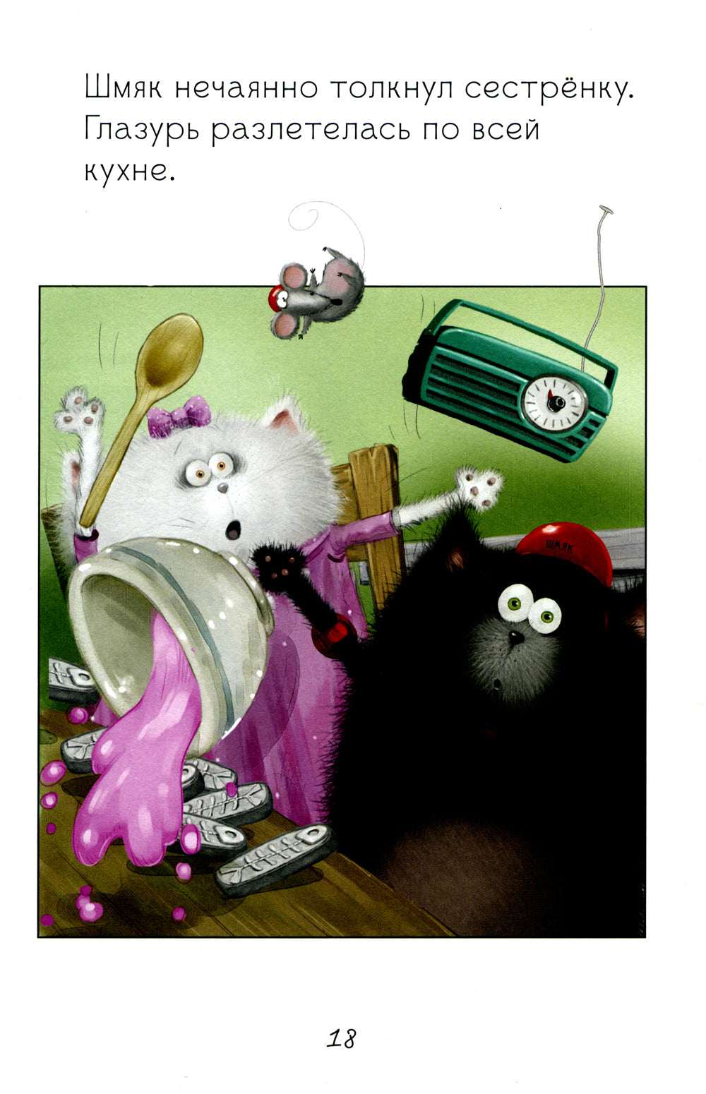 Что делать, если у тебя новые, а на улице, как ролик назло, зарядил дождь? Конечно, постройте гоночную трассу в гостиной! Что из этого вышло - читайте в книге о приключениях котёнка Шмяка и его подруги Сырника.