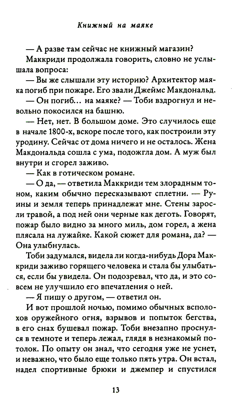 Ньютон-Данбар, маленький городок, спрятавшийся в долине среди гор на северо-востоке Шотландии, известный как маяком, который двести лет назад устроился рядом со своим домом, местный землевладелец, хотя до моря отсюда совсем не близко. Сейчас в нем находится единственный на многие мили вокруг книжного магазина — центр притяжения для любителей чтения, уютной атмосферы, теплых беседок и хорошего кофе. Управляющая книжным и живущая на верхнем этаже маяка Рэйчела приехала сюда пять лет назад, сбежав от мужа-садиста и решив начать новую жизнь, — и обрела любимую работу и место, которое занимала теперь его дом. После внезапной смерти владельца маяка ей пришлось начать переговоры с нечестными дельцами и неблагоприятными обстоятельствами, чтобы преступники спасли книжный маяке, который занял решающее место в жизни многих близких ей людей...