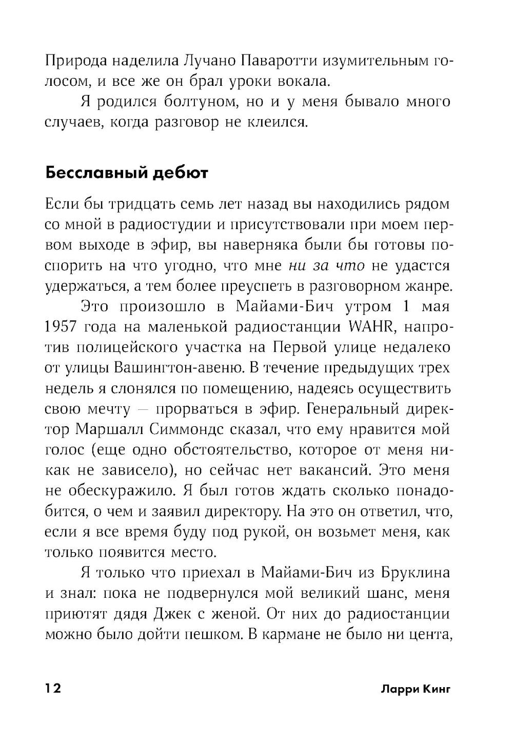 Вы хотите получить повышение по службе, найти себе пару, научиться продавать или торговать? Удивляетесь тем, почему проявления одних людей заинтересовывают и обращают внимание на действия, а других — нет? Не думайте, что это у них от природы, — скорее всего, они просто этому научились, уделяя этому аспекту много внимания. И научиться быть душой компании, дополнительно интервьюером или лидером, способным жить за себя может любой человек. Ларри Кинг в этом убежден. Один из самых известных журналистов мира, Кинг изучил всю жизнь, ведь он понял один из главных нюансов популярности: коммуникабельность. Благодаря этому качеству Кинга попала в Книгу рекордов Гиннессы как бессменного ведущего самого продолжительного телешоу в истории. В последние несколько лет он брал интервью у большинства самых влиятельных и популярных людей на планете. Сегодня фигура короля служит образцом для подражания журналистам и ведущими в различных точках планеты. Умение общение требуется не только журналистам или политике, оно необходимо каждому человеку, ведь люди, как известно, социальные существа. Свою книгу король посвятил секретам общения и коммуникабельности. Исходя из своего богатого жизненного опыта, он дает советы, как завязать разговор с кем угодно, как побороть страх перед публичным выходом и использовать полученные навыки для достижения хороших высот в жизни.