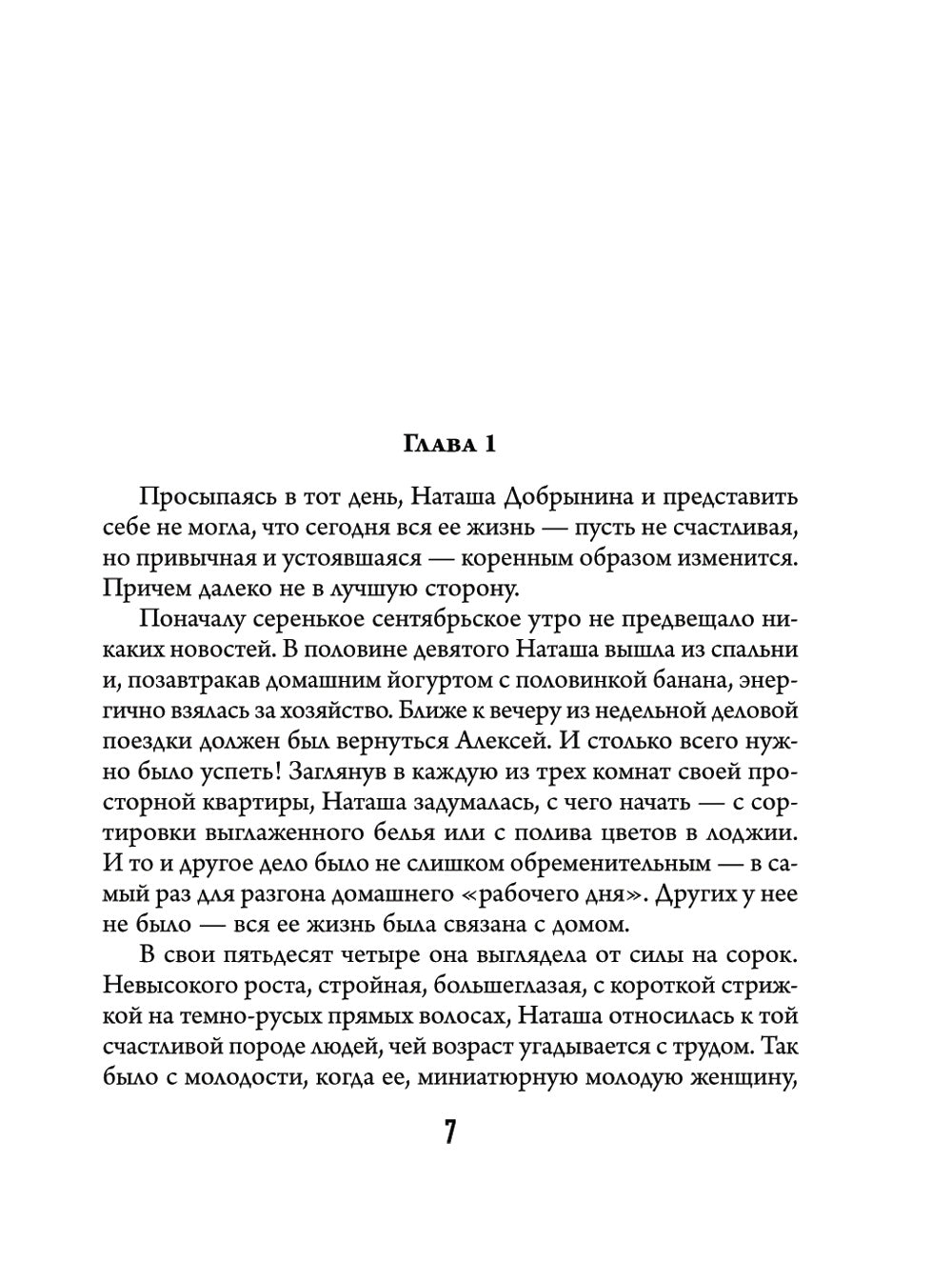 Наташа — привлекательная женщина, энергичная домохозяйка, жена немолодого бизнесмена и мать двоих взрослых детей. В один «прекрасный» день мужчина выдвигает ее перед фактом: у него новые отношения с молодой амбициозной коллегой, беременной девушкой и свадьба уже назначена. Стабильная и благополучная жизнь Наташи рвется в одночасье. В ней никто не нуждается. Как же быть? Это конец или шанс начать все сначала, бросить вызов себе, обстоятельствам и победить?