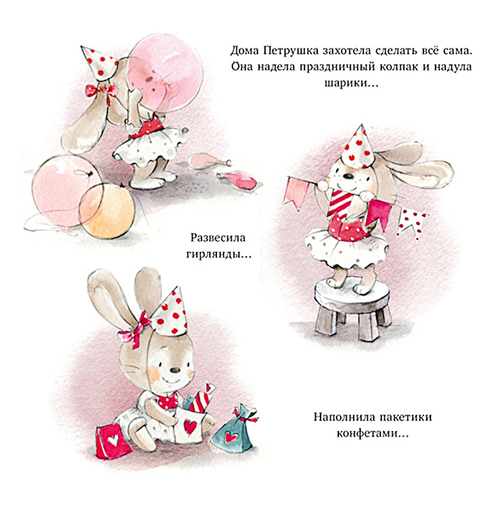 Заветное желание зайки Петрушки — поскорее вырасти и стать большим-большим, как мама и папа. Ей не терпиться пойти в школу, ведь она уже умеет считать до 10... Хотя мама говорит, что в школу еще рано, но Петрушка подумала, что она уже совсем большая! Она хочет это найти и старается в свой день рождения все-все-все делать сама. И даже готова восстановить страшный большой кувырок. У зайчишки не все получается, но кое-что или даже кое-кто поможет Петрушке понять, что все-таки она и правда совсем большая!