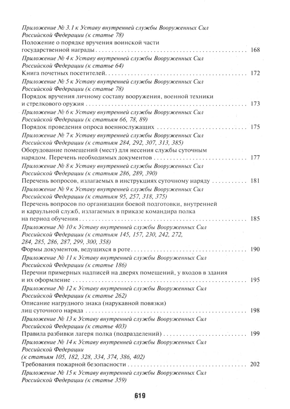 В итоги включены Устав внутренней службы Вооруженных сил Российской Федерации, Дисциплинарный устав Вооруженных сил Российской Федерации, Устав гарнизонной и караульной службы Вооруженных сил Российской Федерации, Строевой устав Вооруженных сил Российской Федерации, Устав военной полиции Вооруженных сил Российской Федерации и указы, общепризнанные ими положения. Тексты документов подготовлены к использованию с юридической системой «Кодекс», проверены с учетом условий.