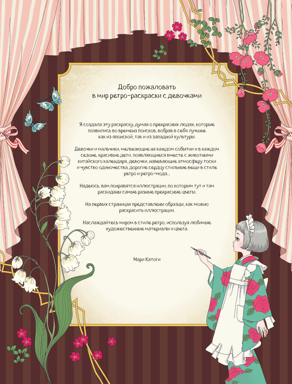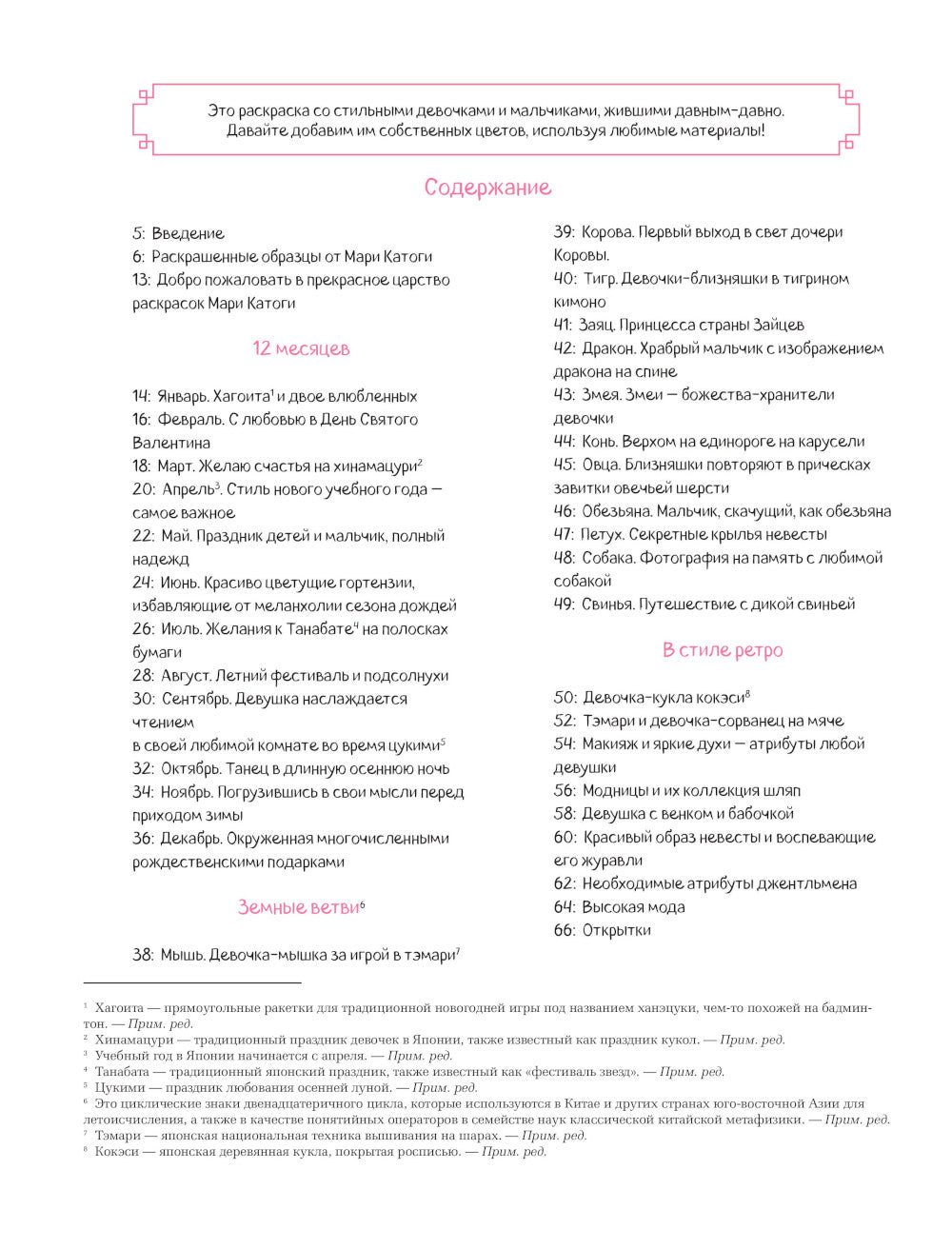 Откройте для себя прекрасный мир ретро-раскраски, созданной художницей Мари Катоги, вдохновленной японской культурой. Данная иллюстрация отражает солнечную атмосферу и атмосферу прошлых эпох. В этой раскраске встречаются прекрасные герои и героини на фоне разных событий и сезонов. В этой уникальной раскраске вы встретите детей, вдохновленных животных китайского календаря, девочек, передающих чувство тоски и одиночества, а также модные ретро-аксессуары, наполненные нежностью и стилем. Цветные рисунки на первых страницах помогут вам изучить различные способы раскрашивания и воплотить свои художественные идеи в жизнь. Откройте для себя мир ретро-эстетики, наслаждаясь традиционным творчеством.