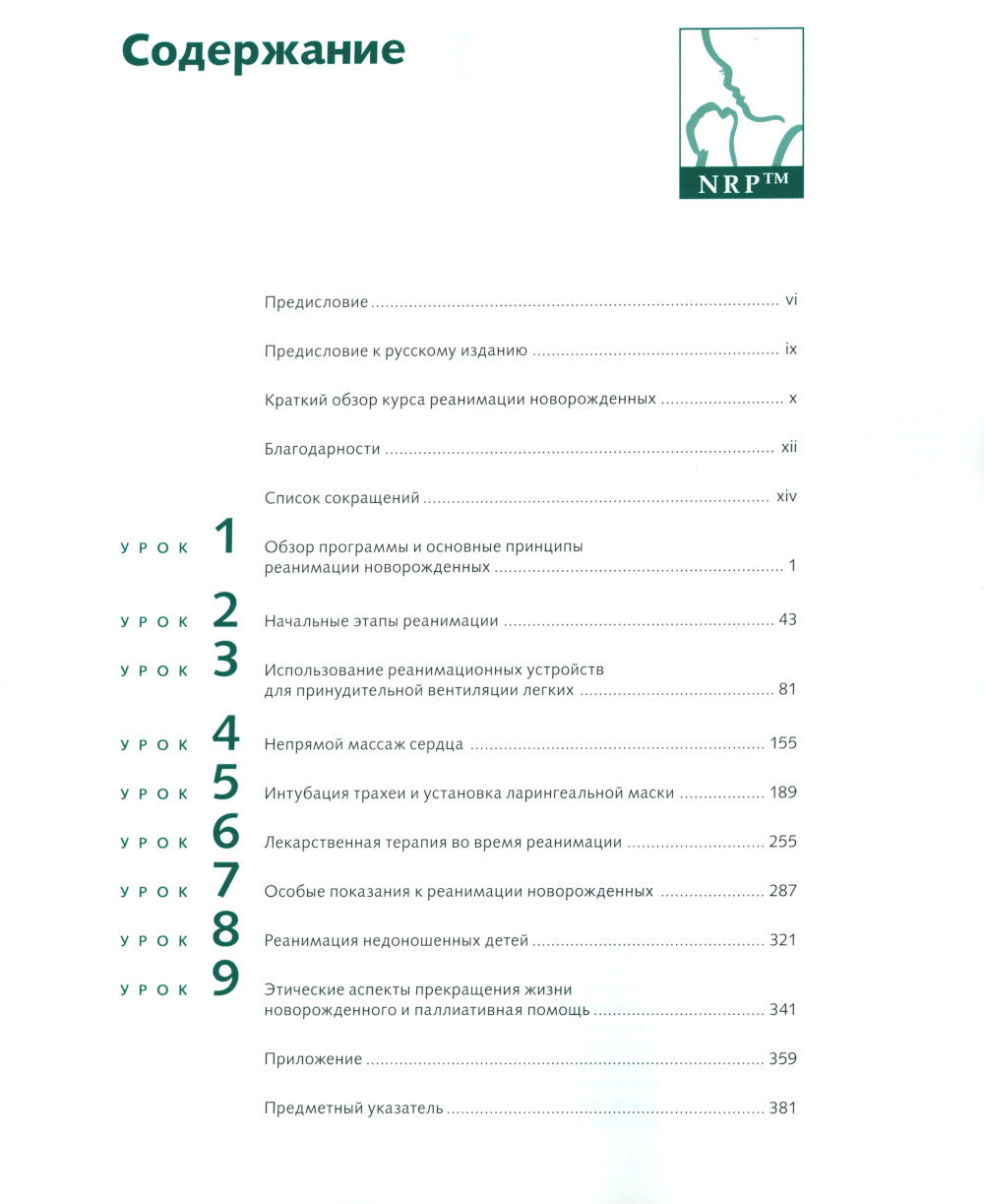 Эта книга является очередным изданием учебника по первой реанимации новорожденных Американской академии педиатрии и Американской ассоциации кардиологов (6-е издание, дополненное и переработанное). Издание можно использовать для самостоятельного обучения навыкам первой реанимации новорожденных. Книга состоит из 9 уроков, в которых подробно рассмотрены основные этапы реанимации новорожденных. Теоретическое обучение построено по принципу тестов, которые обучаются после каждого изученного раздела. В конце Урока дает задания для практических занятий под контролем инструктора. В новое издание включены различные различные ситуации, которые учитываются с учетом последних изменений тактики первой реанимации. Данный материал полностью соответствует рекомендациям по первой реанимации новорожденных, предложенным Американской академией педиатрии и Американской ассоциацией кардиологов в 2010 году.