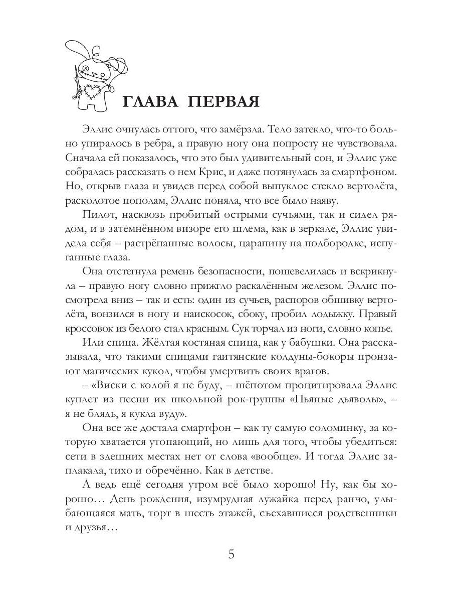 Падчерица принца «нефтяного короля» мистера Гейджа Эллис умудрилась поругаться со своим богатым отчимом прямо на праздновании собственного восемнадцатилетия. Прыгнув в вертолет, предназначенный для катания гостей, она командовала пилоту: «Погнали из этого гадюшника!» Потом была буря, катастрофа, мертвый пилот и сумасшедшая старуха Джинна Джем с бубенчиками на шляпе. Роман «Я – кукла вуду» — это не римейк «Волшебника из страны Оз» и не фанфик на «Волшебника Изумрудного города», это захватывающая дух история про считающую себя куклой вуду девушку Эллис и фантасмагорический мир Морвеланда, в котором идет война всех против всех, второй артиллерии затыкает дыру в черепе пучков травы, а Тотошка – не щенок, а ТТ пистолет из далекой России, который умеет разговаривать. Эллис и ее случайных спутников ждет долгий и трудный путь по дороге из битого кирпича — выжженные земли, гнилые болота, коварные враги и отсутствие спиртного…