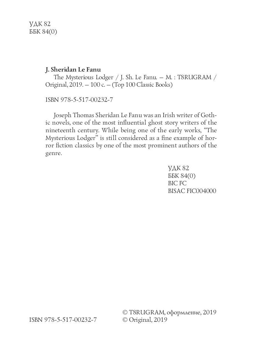 Джозеф Томас Шеридан Ле Фаню — ирландский писатель, автор готических романов, один из самых влиятельных авторов историй о привидениях XIX века. «Таинственный жилец», будучи одним из его ранних произведений, до сих пор считается прекрасным образцом классики ужасов, созданной одним из самых выдающихся авторов этого жанра.