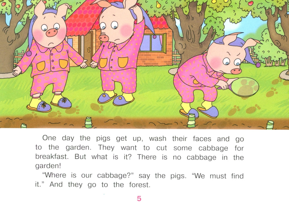 Пособие может быть использовано при обучении детей английскому языку в дошкольных образовательных учреждениях и в начальной школе. Эта книга является продолжением сказки о трех поросятах. Поросята счастливо живет в своем кирпичном домике, как вдруг в одно прекрасное утро у них падает капуста. Читая эту детективную историю, ребенок узнает много новых английских слов, учится правильно задавать вопросы, использовать повелительные предложения. Книга рассчитана на детей, которые уже освоили элементарные слова и выражения.