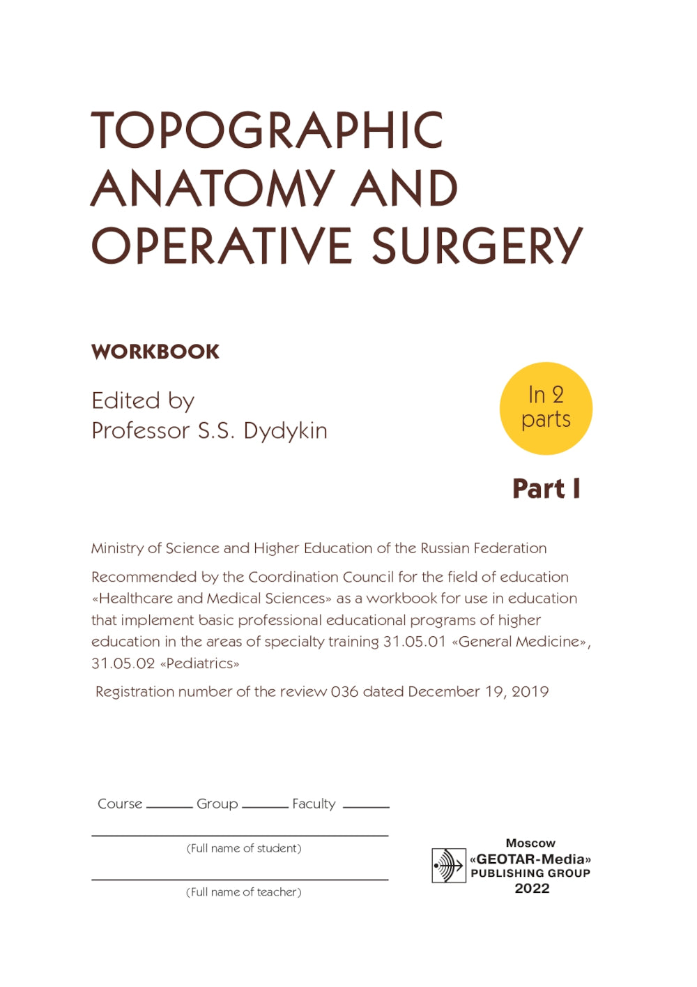 Учебное пособие по дисциплине «Топографическая анатомия и оперативная хирургия» подготовлено сотрудниками кафедры оперативной хирургии и топографической анатомии Сеченовского университета в соответствии с требованиями федерального государственного образовательного стандарта высшего профессионального образования по специальностям «Лечебное дело» и «Педиатрия». В рабочей тетради темы сгруппированы по разделам дисциплины. Первая часть содержит разделы, посвящённые топографической анатомии и оперативной хирургии верхних и нижних конечностей, головы и шеи. Вторая часть включает разделы по брюшной полости, тазу и грудной клетке. Рабочая тетрадь предназначена для студентов лечебного и педиатрического факультетов медицинских вузов. Фактический материал, положенный в основу рабочей тетради, содержится в учебниках «Оперативная хирургия и топографическая анатомия» под редакцией В.В. Кованова (1995, 2001), «Топографическая анатомия и оперативная хирургия» под редакцией А.В. Николаева (2007, 2009, 2015).