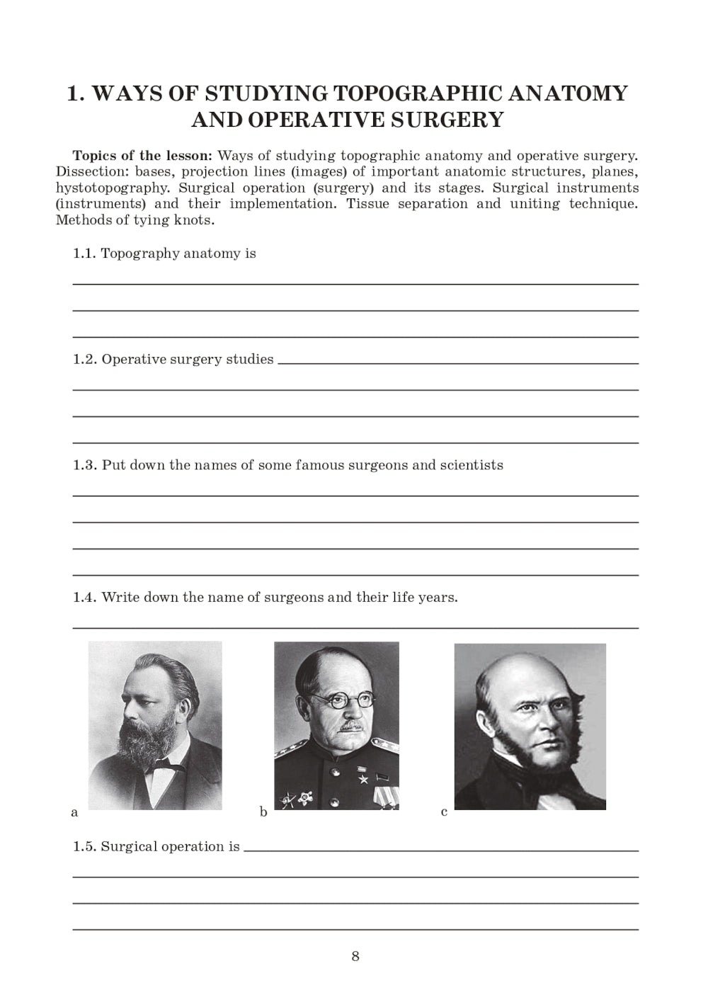 Топографическая анатомия и оперативная хирургия. Рабочая тетрадь. В 2 частях. Часть 1: на англ.яз.