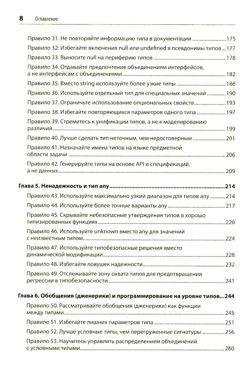 Способен ли TypeScript решать проблемы, известные так знаменитому JavaScript? Да, но его изучение требует определенных усилий, времени и практики. 83 правила ускоряют и облегчают знакомство с TypeScript. Мое правило — это конкретная рекомендация, рассказывающая на примерах, что можно и чего нельзя делать на TypeScript и как грамотно работать с этим языком. Эта книга поможет подняться на уровень начинающего или среднего пользователя, знакомого с основами TypeScript, на уровень TS-эксперта, который может профессионально работать с этим языком. Второе издание было обновлено для TypeScript 5 и включало две новые главы, посвященные программированию на уровне типов и рецептов TypeScript.